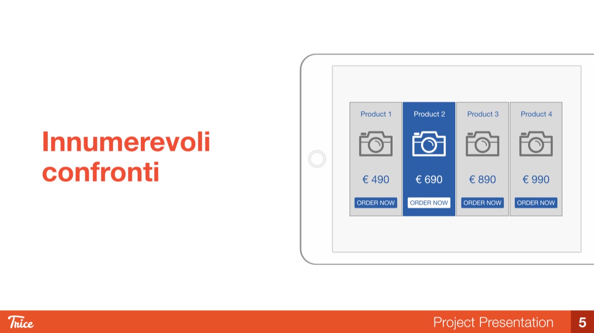 "Trice" si può definire come la versione shopping della famosa app "Tinder". L'idea presentata consisteva nel creare un'applicazione tutta basata sulla casualità e sull'impulso all'acquisto. Il progetto è stato sviluppato a lungo insieme a Lobae ed aveva trovato anche un potenziale finanziatore, ma poi per questioni societarie non è stato portato avanti.